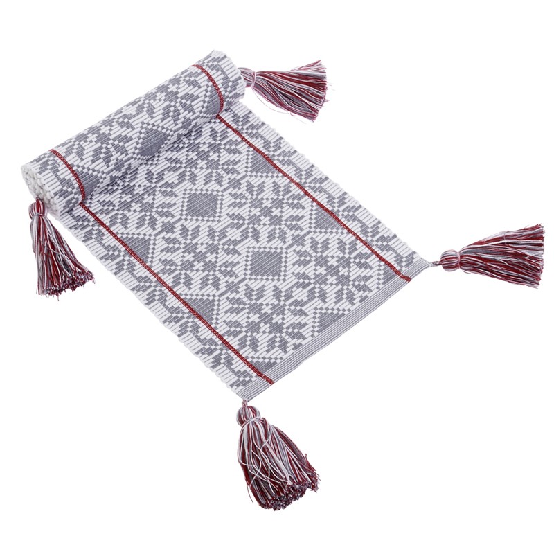 Dodajte svojmu jedálenskému stolu nový look s tkaným bavlneným behúňom ALEX. Vďaka vzoru, ktorý vznikol tkaním, bude krásnym doplnkom vašej jedálne. Behúň na stôl ALEX sa hodí do každého škandinávsky ladeného interiéru. Sivo biely vzor dopĺňa červený detail. Zaujímavým prvkom sú ozdobné strapce na všetkých štyroch koncoch. Behúň vynikne na masívnom drevenom stole alebo na jednofarebnom obruse, ktorému dodá hravosť a noblesu.